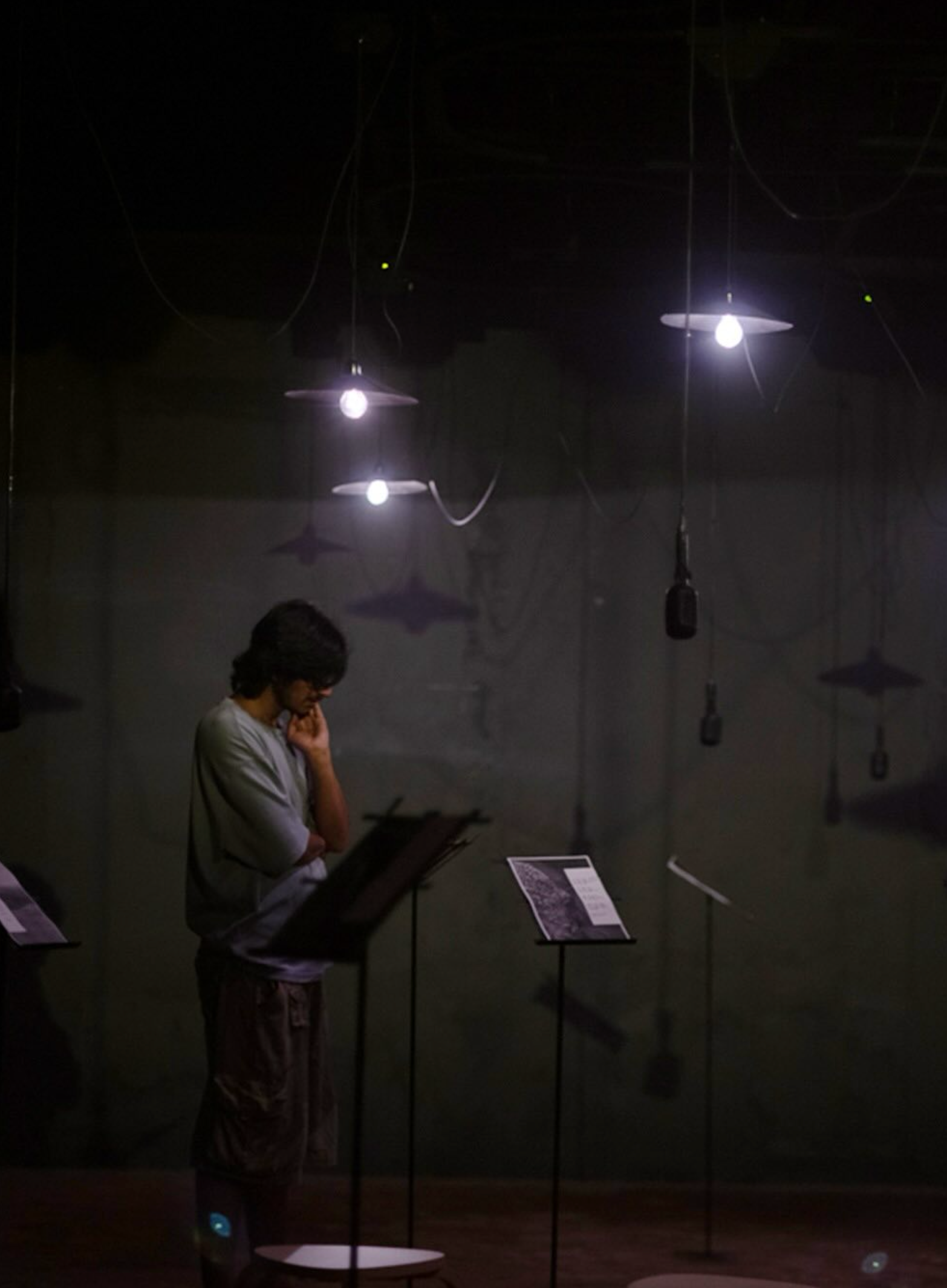 As microphones slowly moved through the room, fragments of these voices echoed and intertwined, creating a layered soundscape that reflected how language, memory, and collective histories travel across borders and generations.