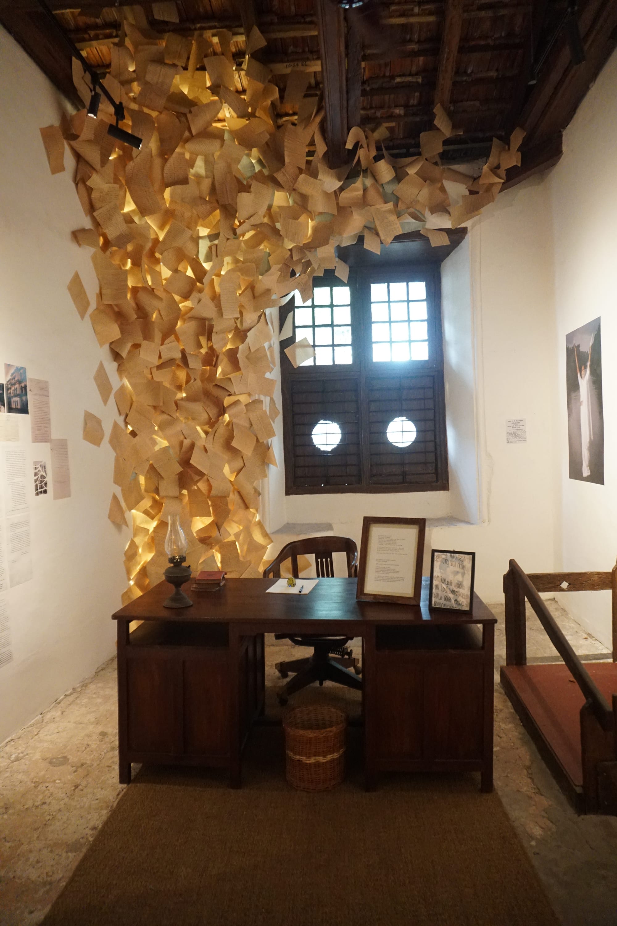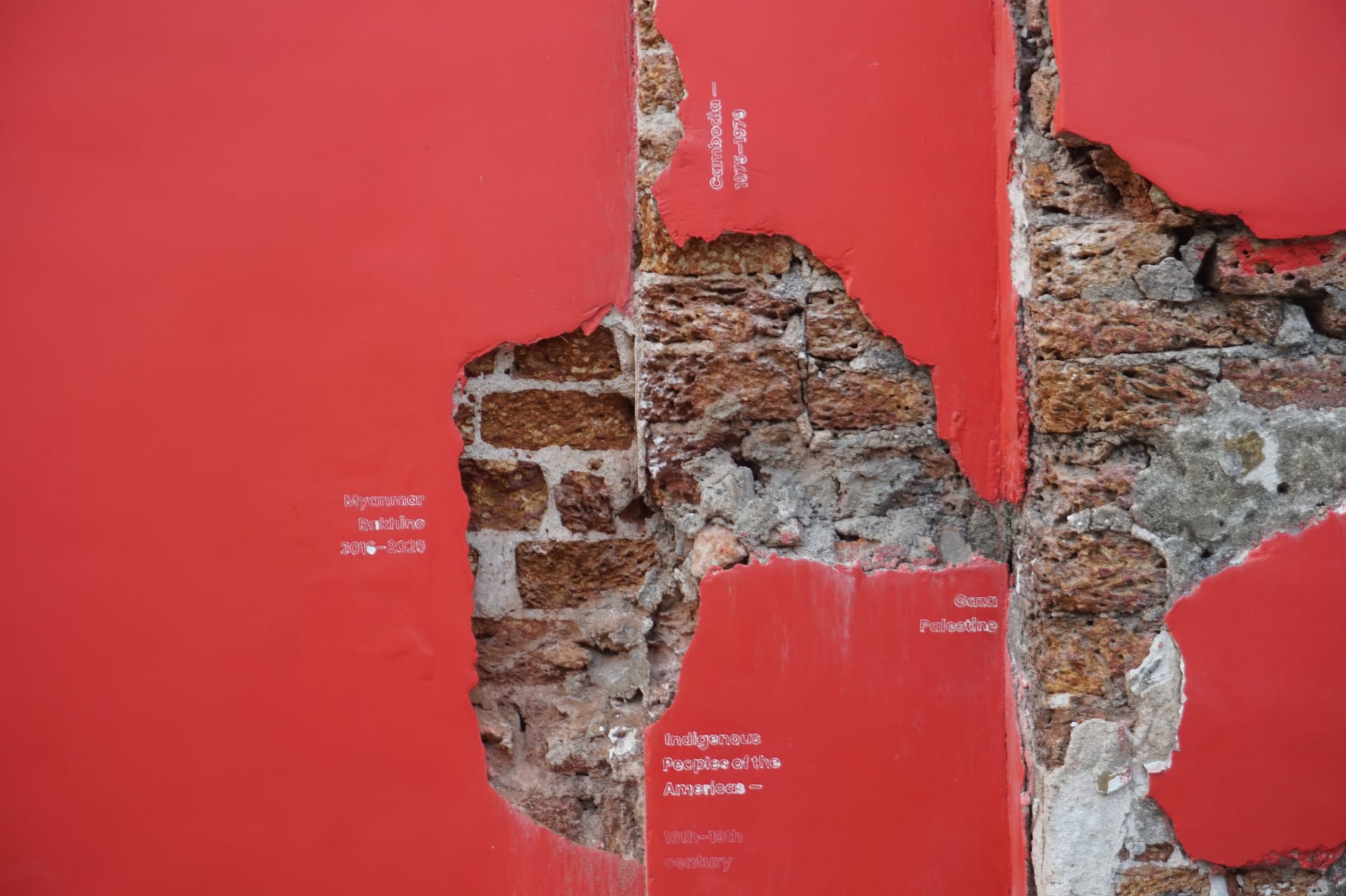 Listening Air by Shilpa Gupta, displayed at the Ginger House Museum Hotel, was a surprising encounter. Though not officially listed among the Biennale venues, the work stood out for the immersive experience it created. The multi-channel sound installation filled the space with overlapping voices drawn from songs of protest, labour, and resistance from around the world.