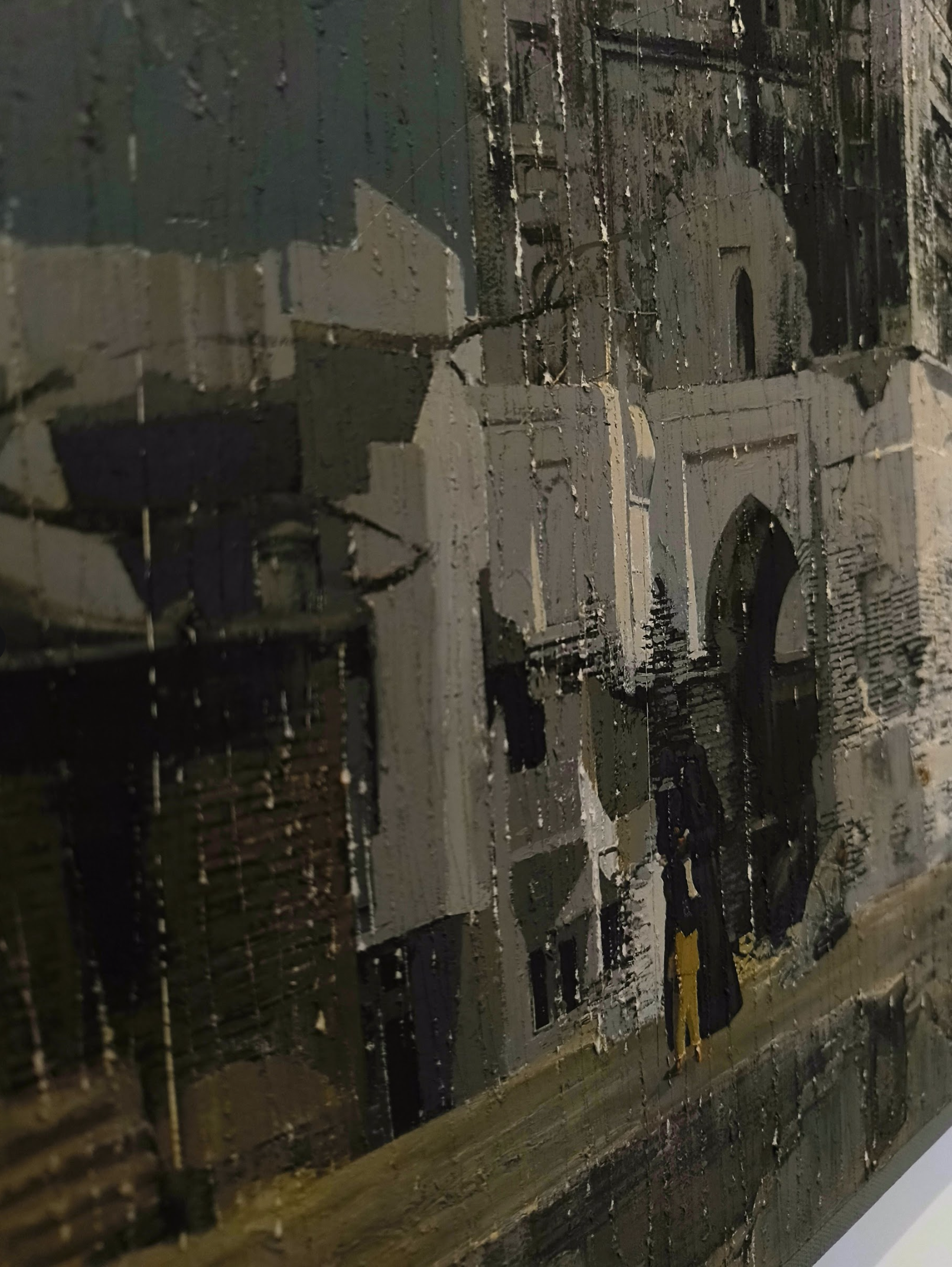 His ongoing project Reliquary (2024–ongoing) reconstructs architectural sites and shared religious spaces through paintings, sculptural replicas, and historical fragments.